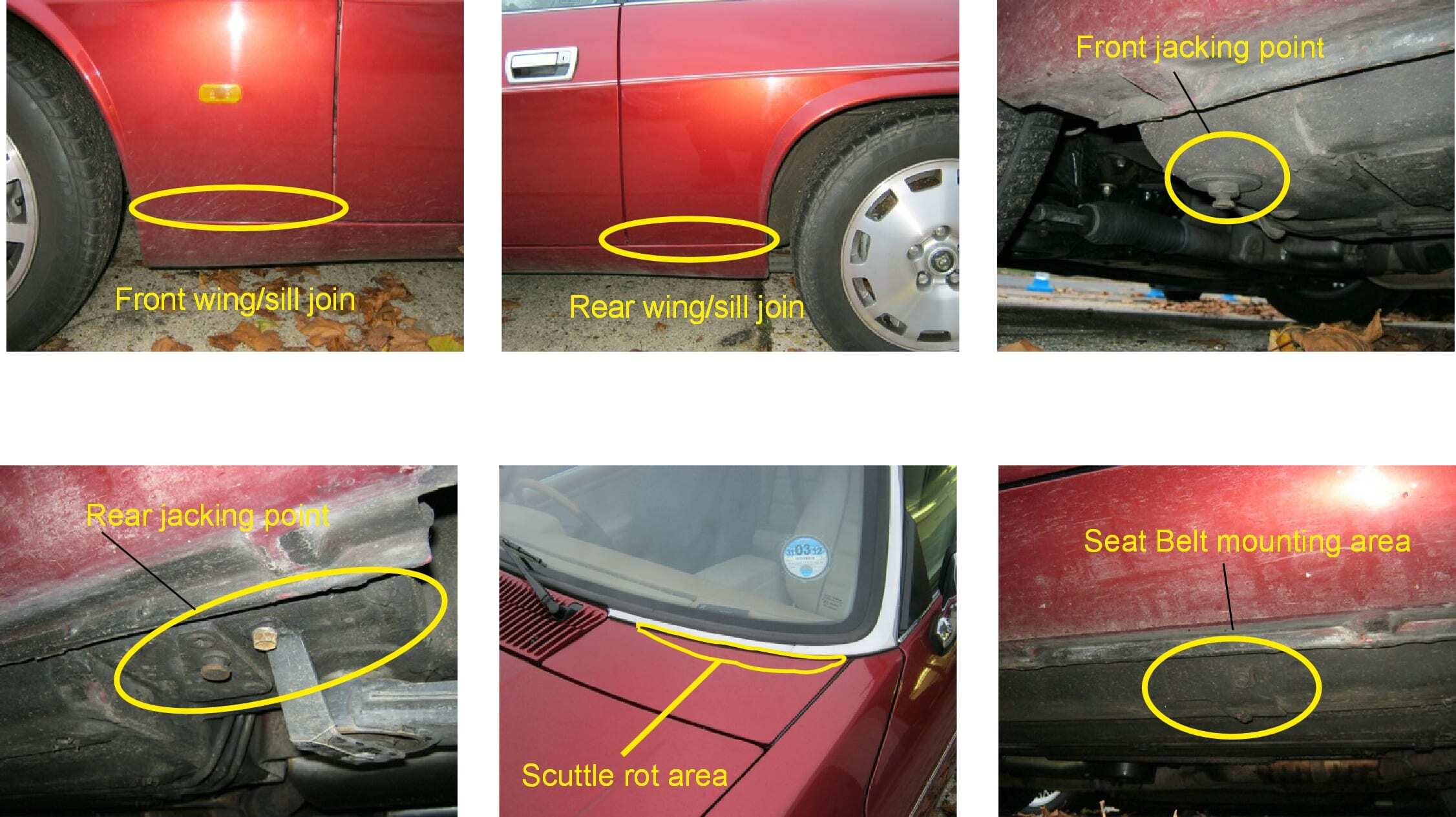 These cars all rust in the same places - some more than others, so it is possible to form a view of the total rust condition just by looking at a few of the usual suspect areas.