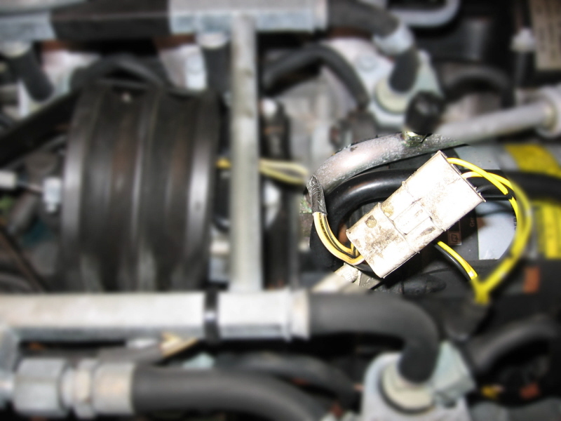 The actuator comprises a rubber bellows, an expansion spring and two steel endplates, one of which incorporates two 12 volt electric solenoid vacuum valves. It is located in the centre of the engine’s “V”, and is bolted to a plate attached to the end of the aircon compressor.